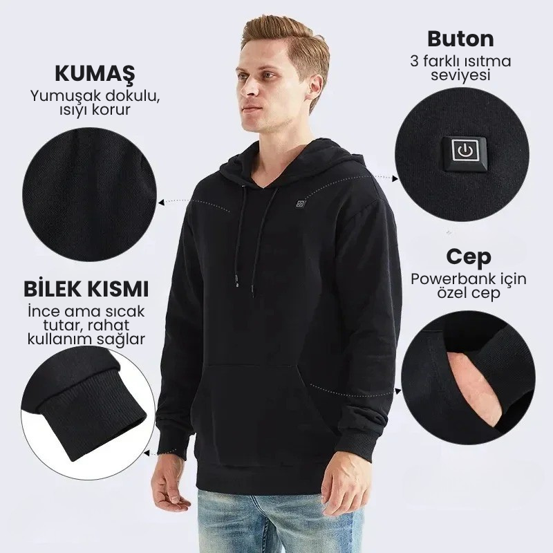 Levore Warm, içinde gizli ısıtma panelleri bulunan, konforlu ve şık bir kapüşonludur.